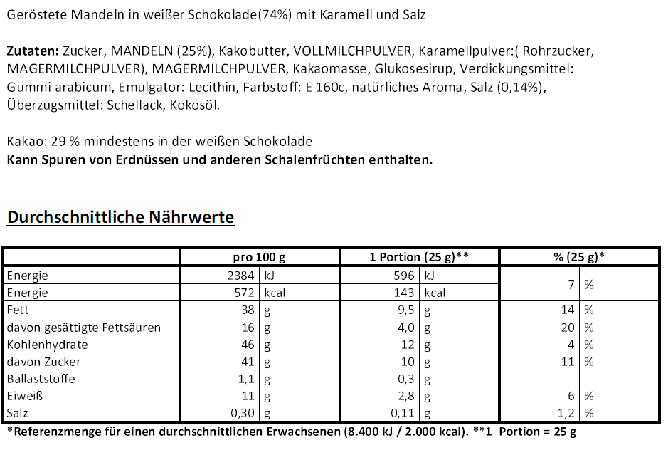 Die Kombination aus knackigen Mandeln, süßem Karamell und einer Prise Salz sorgt für einen unvergleichlichen Snack – nicht zu süß, nicht zu salzig, sondern einfach genau richtig.